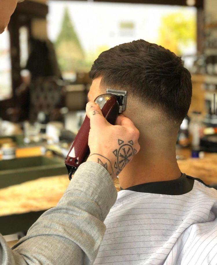 Een klassieke knipbeurt van de zijkanten en achterkant, met een nette afwerking.