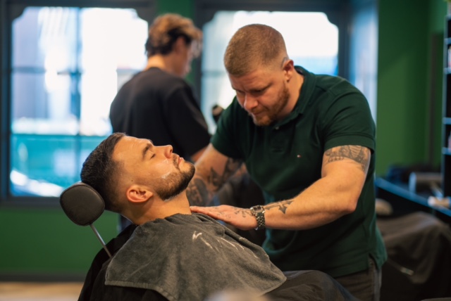 De klassieke complete scheerbehandeling met scheerschuim, stomende handdoek en een ijs handdoek.